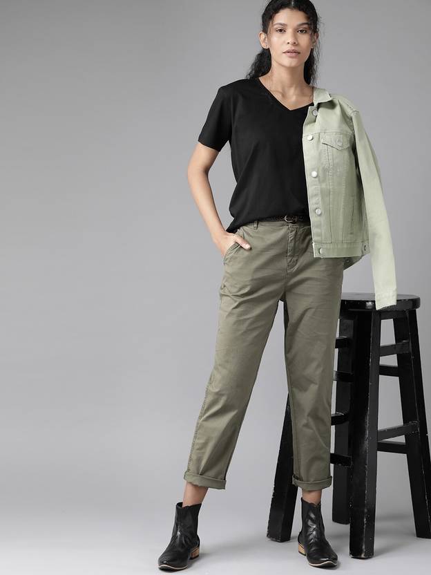 Roadster Solid Women V Neck Black T-Shirt