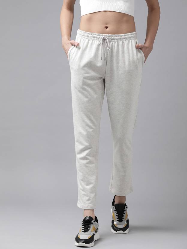 Off-White Solid Regular Track pants has an elasticated waistband with drawstring closure and two pockets. These track pants from Roadster are a must have addition to your wardrobe. You can pair these with a crop T-shirt and sneakers to complete the look.