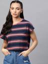 Pack of 3 T-shirtsWhite solid T-shirt, has a round neck, short extended sleeves and straight hemPeach-colored T-shirt with typography detailing, has a round neck, short extended sleeves and straight hemNavy blue and peach-colored striped T-shirt, has a round neck, short extended sleeves and straight hem.