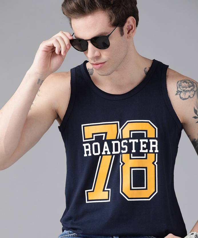 Roadster Typography Men Round Neck Dark Blue T-Shirt