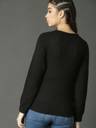 Liven up your fall and winter wardrobe with this cozy and pretty Roadster sweater. This black self design cardigan features a round neck, a full zip closure, long sleeves, and a ribbed hem. You can match this black piece with slick black jeans and leather boots for a must-have weekend ensemble.