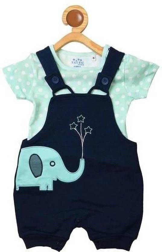 Roble Dungaree For Boys & Girls Casual Printed Cotton Blend (Blue, Pack of 1)