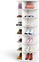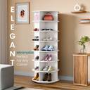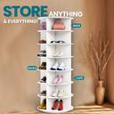 • SPACE-SAVING DESIGN: With its tower-shaped design, this revolving shoe rack can hold a large number of shoes in a small area. The 7-tier rack can accommodate 28 shoe pairs, the 5-tier rack can accommodate 20 pairs, and the 3-tier rack can accommodate 12 pairs of footwear.