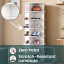 • STURDY CONSTRUCTION: The shoe rack tower is made of durable engineered wood with a scratch-resistant surface and includes plastic buffers to prevent floor scratches.