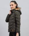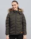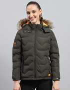 Rockit from House of Monte Carlo Womens Olive Solid Hooded Neck Full Sleeve Jacket. Made from Polyester fabric.