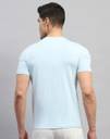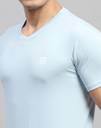 Men Solid V Neck Cotton Blend Blue T-Shirt