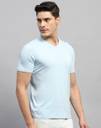 Rockit from House of Mens Blue Solid V Neck Half Sleeve T-Shirt. Made from Cotton Blend fabric.