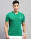 Men Solid V Neck Cotton Blend Green T-Shirt
