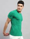 Rockit Mens Green Solid V Neck Half Sleeve T-Shirt. Made from Cotton Blend fabric.