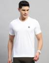 Men Solid V Neck Cotton Blend White T-Shirt