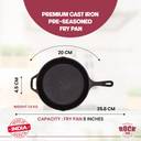 Dutch Oven This Dutch oven is a must have in every kitchen, as it is one of the basic cookware items to make a meal. Our Dutch ovens are wide and roomy, which is totally ideal when you want to cook a whole chicken. The high sides of the Dutch oven keep the greens in the pot, rather than all over your stovetop. It has 3 ltr’s capacity. This Dutch oven also comes pre seasoned with sunflower oil and one year warranty. So indulge in some delectable deep fry food tried out in our Dutch oven. 8 Inch Pan From starters to desserts, to deep fry or shallow fry, cook your favourite item with our rock tawa pan. Our products are manufactured with the ability to withstand hard handling and last for generations. A main advantage with the usage of cast iron skillet is that it increases the iron content on food and helps to lead a healthy life. This rock tawa pan could be used on gas, electric or induction stove tops. This rock tawa Skillet comes pre seasoned with sunflower oil and one year warranty.