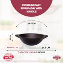 Rock Tawa Rock Tawa Cast Iron Kadhai 9 Inch (Pre-Seasoned) Kadhai 29.5 cm diameter 2 L capacity (Cast Iron, Induction Bottom)