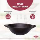 Made with meticulous attention to detail, this kadhai is designed to enhance your cooking experience. Thanks to its chemical-free coating, you can enjoy wholesome meals without worrying about harmful substances leaching into your food. Thus, this kadhai consumes no oil, making it a healthy choice for the discerning chef.