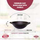 Rock Tawa Rock Tawa Cast Iron Kadhai | Pre-Seasoned | 11 Inch Kadhai 29 cm diameter 3 L capacity (Cast Iron)