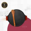 Sporting a natural and toxin-free cast iron heavy metal frame, this dosa tawa promotes healthy cooking by eliminating harmful chemicals. The cast iron construction enhances the durability and longevity of this tawa, allowing for even heat distribution and exceptional cooking results. The natural material also improves with use, gradually developing a non-stick surface that makes cooking and cleaning easier over time.