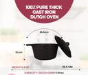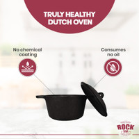 Rock Tawa Rock Tawa Cast Iron Dutch Oven Skillet-(Pre-Seasoned) Pot 26 cm diameter 5 L capacity with Lid (Cast Iron, Induction Bottom)