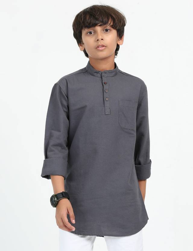 ROCKET SCIENCE Boys Solid Pure Cotton Straight Kurta (Grey)