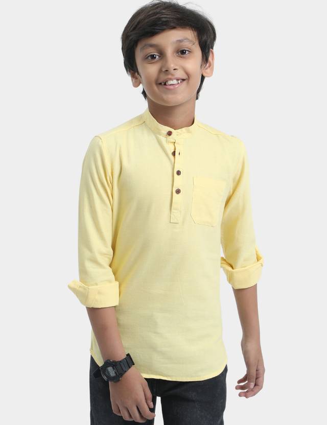 ROCKET SCIENCE Boys Solid Straight Kurta (Beige)