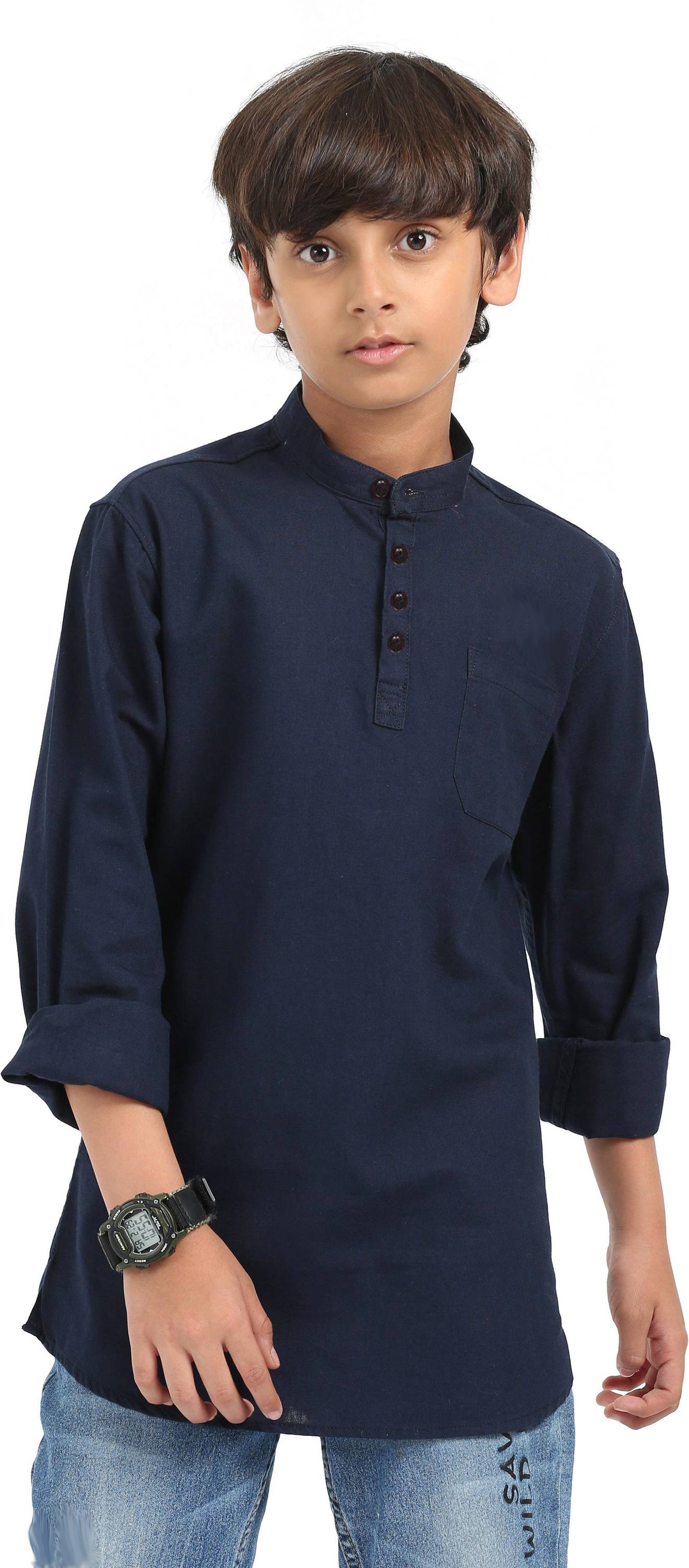 For every special occasion, on-trend casual/party wear solid button design full sleeve kurta shirt like this will work wonders on any outfit. It features a mandarin nehru collar neck, a front button, full sleeves and a solid all-over for a stylish appeal. Made from superb, quality fabric to make your child more charming.
