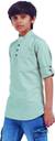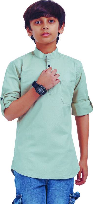 Elevate his style with our Boy's Cotton Casual Solid Straight Short Kurta. Crafted from 100% cotton linen, it offers breathable comfort. Featuring a mandarin collar, it exudes sophistication and versatility for various occasions. Perfect for adding a touch of elegance to his wardrobe.