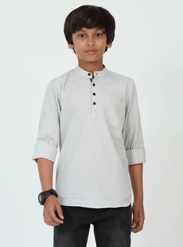 ROCKET SCIENCE Boys Solid Cotton Linen Straight Kurta (Grey)