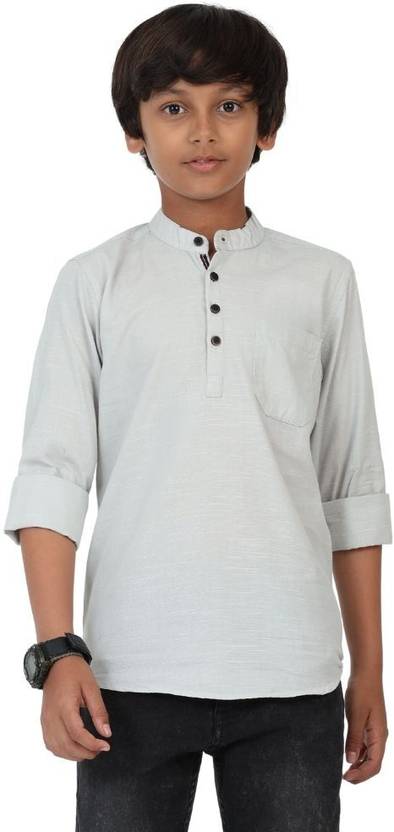 ROCKET SCIENCE Boys Solid Straight Kurta (Grey)