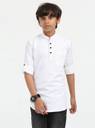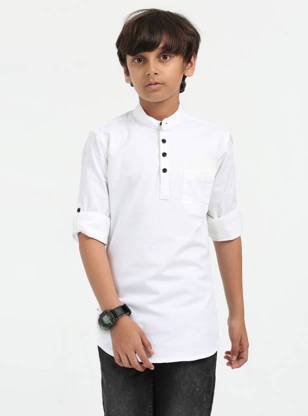 Elevate his style with our Boy's Cotton Casual Solid Straight Short Kurta. Crafted from 100% cotton linen, it offers breathable comfort. Featuring a mandarin collar, it exudes sophistication and versatility for various occasions. Perfect for adding a touch of elegance to his wardrobe.