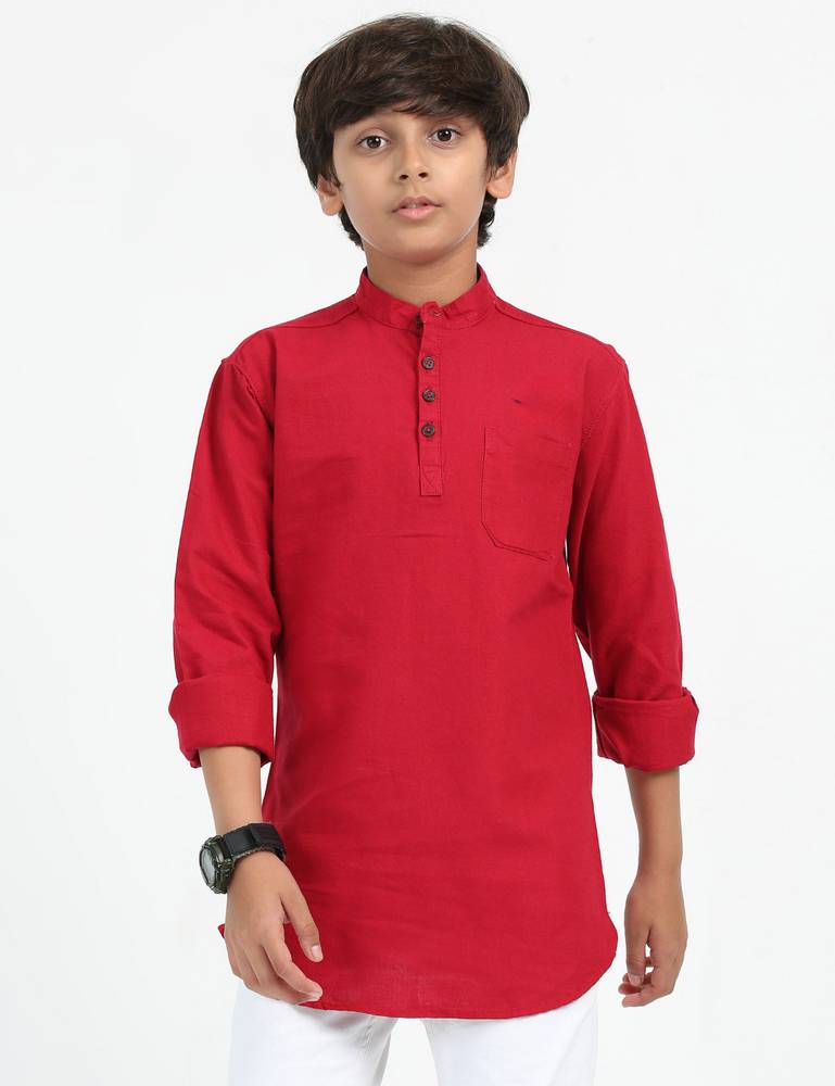 This Boys Solid Pure Cotton Straight Short Kurta combines traditional style with modern comfort, perfect for casual outings and festive occasions. Made from 100% pure cotton, this kurta offers a soft, breathable feel for all-day comfort. The straight cut and solid color add a classic touch, making it a versatile piece that pairs well with jeans or traditional bottoms. Ideal for school, family gatherings, or celebrations, this short kurta is a wardrobe essential for boys.