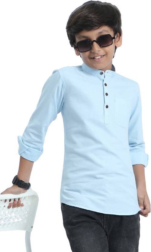 ROCKET SCIENCE Boys Solid Straight Kurta (Light Blue)