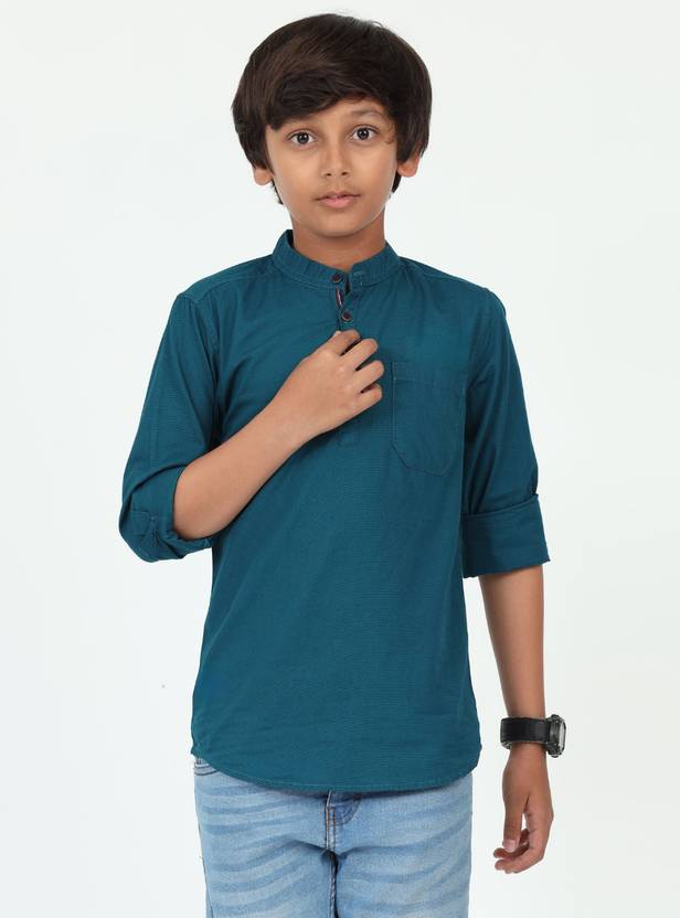 Elevate his style with our Boy's Cotton Casual Solid Straight Short Kurta. Crafted from 100% cotton linen, it offers breathable comfort. Featuring a mandarin collar, it exudes sophistication and versatility for various occasions. Perfect for adding a touch of elegance to his wardrobe.