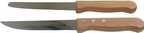 2 Pieces of Wooden handle Stainless Steel Knife German grade stainless steel with wood handles for easy storage and handling. Full tang and Double riveted handle to provide balance for strength and comfortable grip. Stainless steel blades are easy to clean.