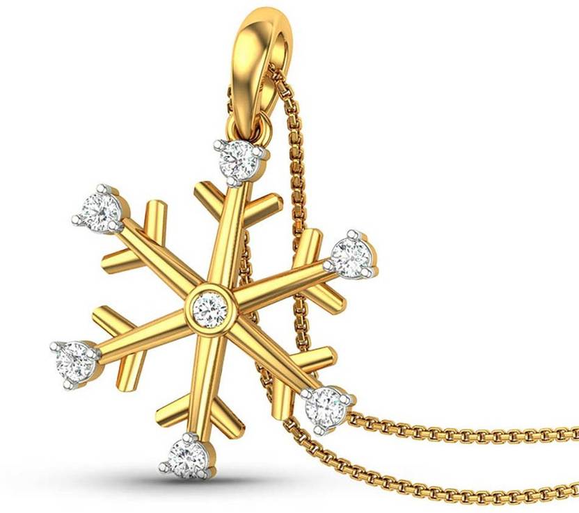 ROCKRUSH Glowing Snowflake Diamond Pendant 14kt Yellow Gold Pendant