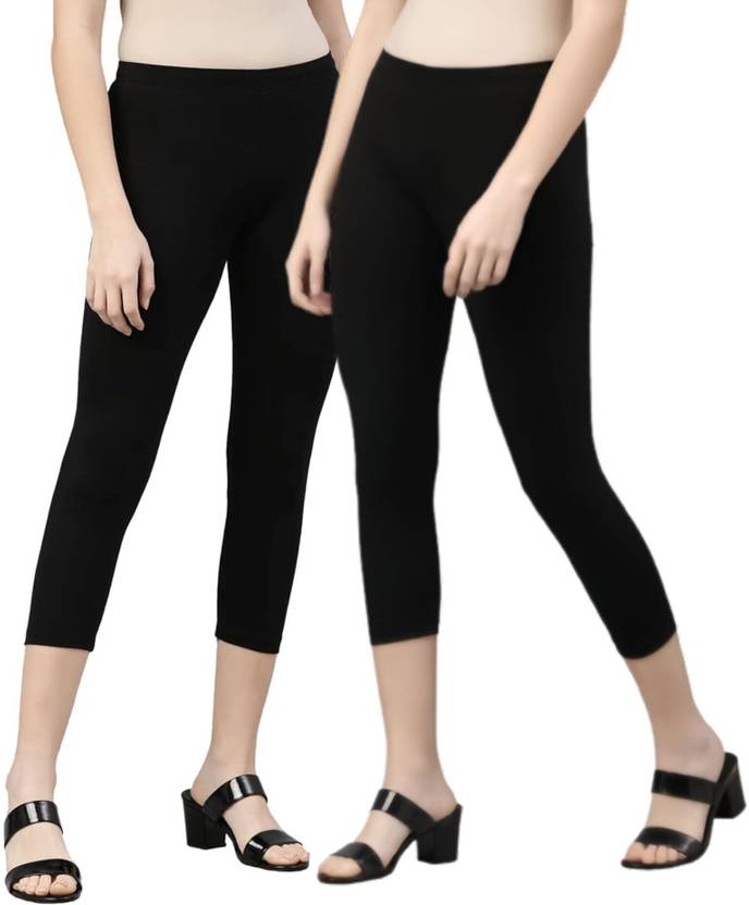 ROCKSY brings you a pair of solid Slim fit pack of black calf length capri leggings for women and girls. This combo of 2 Black colour three fourth leggings women are made from the highest quality of super combed cotton for soft silicon feel and comfortable for skin, we use a 4 feeder 4 way combed cotton lycra which is 4 way stretchable anti pilling and bio-washed (organic washed), making the leggings soft, chemical free, breathable and have a longer fabric life. these set of knee length leggings for women are Suitable with Kurtis, tops for all ethnic as well as long t-shirts, tunic and short kurtis for western look. capri pants are Perfect tights for women for dresses skirts or Casual Outfit Whether you are running errands, meeting friends for coffee, or just lounging around at home, these combo of skin tights short leggings for women are comfortable, stylish, and versatile. half leggings for women have an elasticated waist band It'll stretch in all directions without being see-through and keeping you comfortable all day these skinny combo of cropped short leggings for women capris are so soft and stretchable as it is made with soft cotton elastane fabric using latest technology that make Womens comfortable to wear these capris in any occasions like, workouts, Gym, Running, Sports,Exercise, Fitness, Jogging, Camping, Hiking ,Shopping Dailywear , office wear, casual wear, party wear house wear and workout tights These western wear fashionable combo of capri leggings for women fabric retains shape and color after wash at right price. Must have for your wardrobe collection these western wear multi colour cotton capri leggings for women 3/4 comes in XS S M L XL XXL 3xl size and black white navy blue orange grey green beige red pink to suit all needs Length - 29 inches.