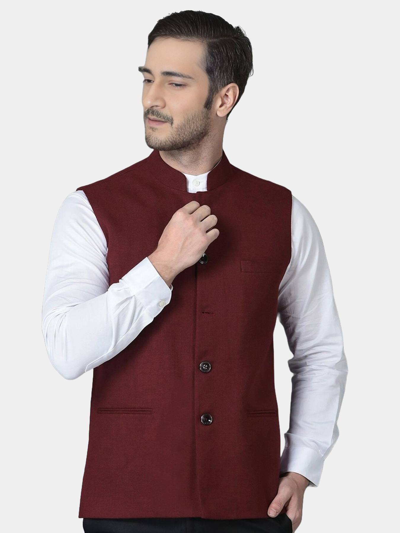 Men's cotton regular fit sleeveless solid Nehru Jacket is truly a versatile garment. Initially reserved for festive occasions in India, the garment is slowly making its way in casual and office wear. Layering this garment over a formal shirt makes for a chic office wear, Wearing the jacket over kurta shirt or kurta pajama is a perfect outfit for Indian events. Nehru Jacket comes with one chest pocket & two other front pockets.