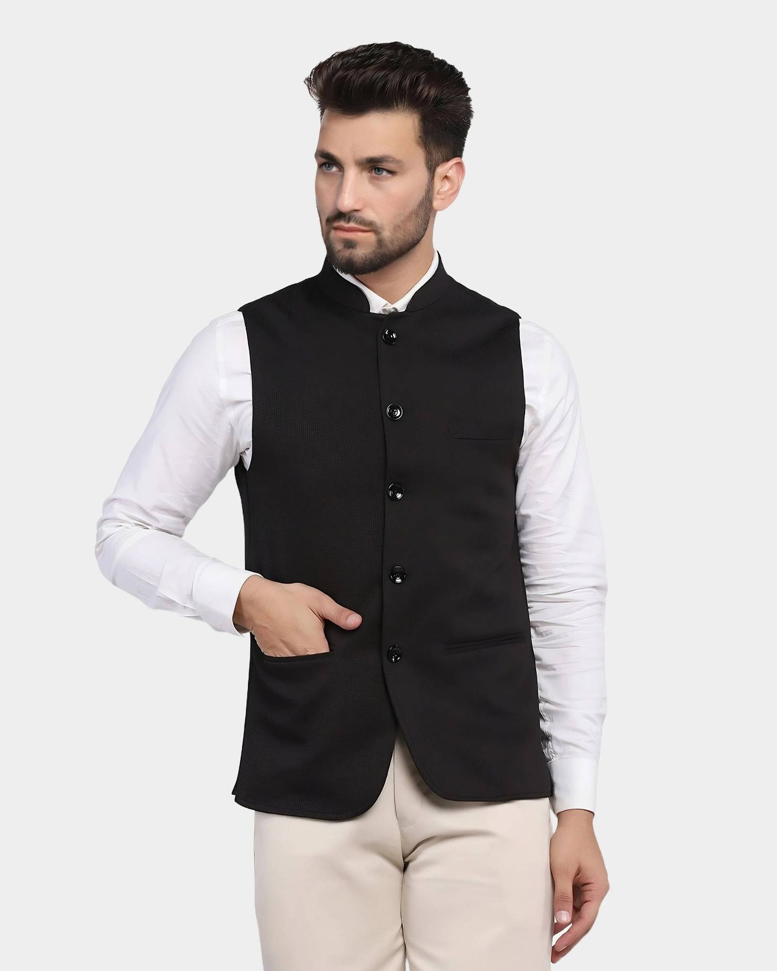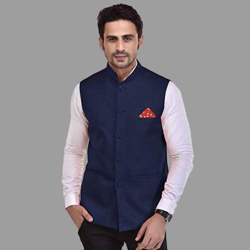 Men's cotton regular fit sleeveless solid Nehru Jacket is truly a versatile garment. Initially reserved for festive occasions in India, the garment is slowly making its way in casual and office wear. Layering this garment over a formal shirt makes for a chic office wear, Wearing the jacket over kurta shirt or kurta pajama is a perfect outfit for Indian events. Nehru Jacket comes with one chest pocket & two other front pockets.