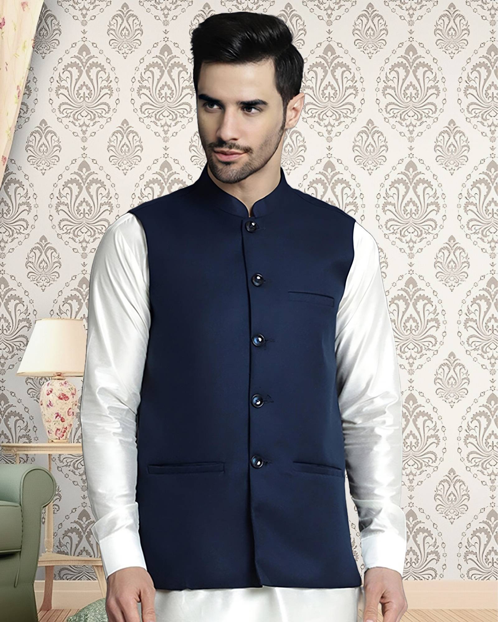 Men's cotton regular fit sleeveless solid Nehru Jacket is truly a versatile garment. Initially reserved for festive occasions in India, the garment is slowly making its way in casual and office wear. Layering this garment over a formal shirt makes for a chic office wear, Wearing the jacket over kurta shirt or kurta pajama is a perfect outfit for Indian events. Nehru Jacket comes with one chest pocket & two other front pockets.