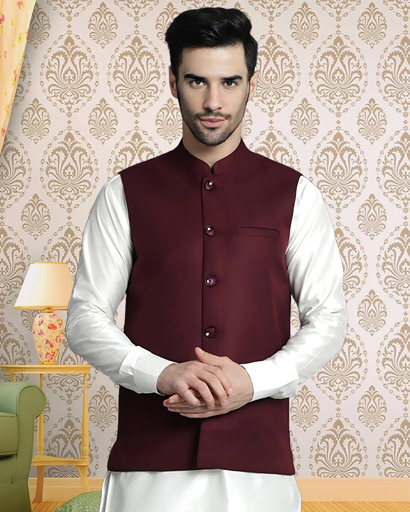 Men's cotton regular fit sleeveless solid Nehru Jacket is truly a versatile garment. Initially reserved for festive occasions in India, the garment is slowly making its way in casual and office wear. Layering this garment over a formal shirt makes for a chic office wear, Wearing the jacket over kurta shirt or kurta pajama is a perfect outfit for Indian events. Nehru Jacket comes with one chest pocket & two other front pockets.