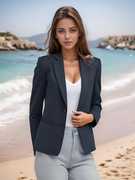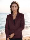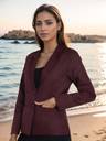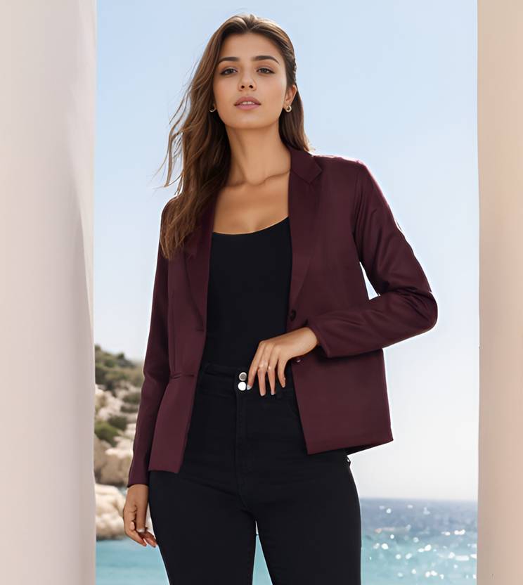 Elevate your wardrobe with this sophisticated blazer, thoughtfully crafted for the modern woman. The blazer features a classic notch lapel design and a refined two-button closure that creates a polished silhouette. Made from premium fabric with a luxurious satin finish, it offers both style and comfort for extended wear. The tailored regular fit flatters while maintaining professional elegance, perfect for various body types. Two functional front flap pockets add practical utility without compromising the sleek design. The full-length sleeves and hip-length cut create a balanced proportion that works beautifully with both formal semi formal and casual attire. Whether paired with tailored trousers for a business meeting or styled with denim for a smart-casual look, this versatile blazer transitions seamlessly from day to evening occasions. The premium fabric lining ensures comfort while maintaining structure. This blazer is ideal for professional settings, special events, or whenever you want to add a touch of sophistication to your ensemble.
