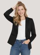 Elevate your wardrobe with this sophisticated blazer, thoughtfully crafted for the modern woman. The blazer features a classic notch lapel design and a refined two-button closure that creates a polished silhouette. Made from premium fabric with a luxurious satin finish, it offers both style and comfort for extended wear. The tailored regular fit flatters while maintaining professional elegance, perfect for various body types. Two functional front flap pockets add practical utility without compromising the sleek design. The full-length sleeves and hip-length cut create a balanced proportion that works beautifully with both formal semi formal and casual attire. Whether paired with tailored trousers for a business meeting or styled with denim for a smart-casual look, this versatile blazer transitions seamlessly from day to evening occasions. The premium fabric lining ensures comfort while maintaining structure. This blazer is ideal for professional settings, special events, or whenever you want to add a touch of sophistication to your ensemble.