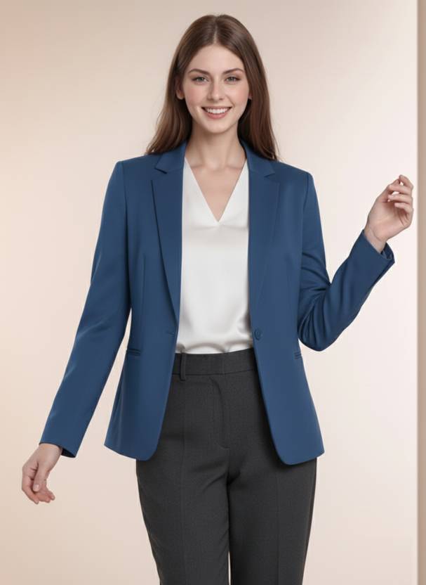 Elevate your wardrobe with this sophisticated blazer, thoughtfully crafted for the modern woman. The blazer features a classic notch lapel design and a refined two-button closure that creates a polished silhouette. Made from premium fabric with a luxurious satin finish, it offers both style and comfort for extended wear. The tailored regular fit flatters while maintaining professional elegance, perfect for various body types. Two functional front flap pockets add practical utility without compromising the sleek design. The full-length sleeves and hip-length cut create a balanced proportion that works beautifully with both formal semi formal and casual attire. Whether paired with tailored trousers for a business meeting or styled with denim for a smart-casual look, this versatile blazer transitions seamlessly from day to evening occasions. The premium fabric lining ensures comfort while maintaining structure. This blazer is ideal for professional settings, special events, or whenever you want to add a touch of sophistication to your ensemble.