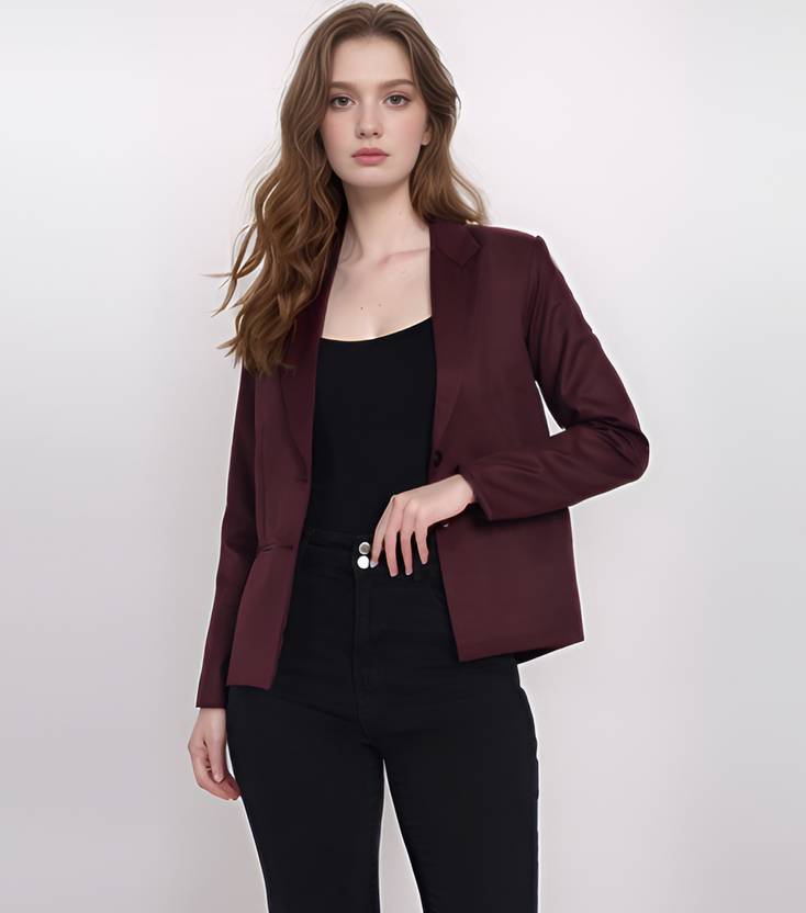Rocksy Solid Single Breasted Formal Women Blazer (Maroon)