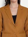 Elevate your wardrobe with this sophisticated blazer, thoughtfully crafted for the modern woman. The blazer features a classic notch lapel design and a refined two-button closure that creates a polished silhouette. Made from premium fabric with a luxurious satin finish, it offers both style and comfort for extended wear. The tailored regular fit flatters while maintaining professional elegance, perfect for various body types. Two functional front flap pockets add practical utility without compromising the sleek design. The full-length sleeves and hip-length cut create a balanced proportion that works beautifully with both formal semi formal and casual attire. Whether paired with tailored trousers for a business meeting or styled with denim for a smart-casual look, this versatile blazer transitions seamlessly from day to evening occasions. The premium fabric lining ensures comfort while maintaining structure. This blazer is ideal for professional settings, special events, or whenever you want to add a touch of sophistication to your ensemble.