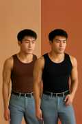 Sporting a ribbed pattern, these men's vests present a textured look. The consistent ribbing creates a look that maintains the visual balance without any additional elements. Moreover, this pattern supports a composed appearance, allowing these vests to retain a neat and uniform character suitable for everyday routines.