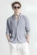 Your casual attire can get a new charm with this casual shirt, featuring a sophisticated striped pattern that adds a touch of refinement to your ensemble. The sleek design highlights modern elegance, making it a versatile choice for various occasions, whether it's a casual day out or a semi-formal gathering.