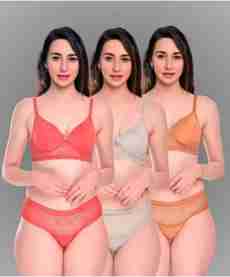 Bra & Panty Set Solid Multicolor Lingerie Set