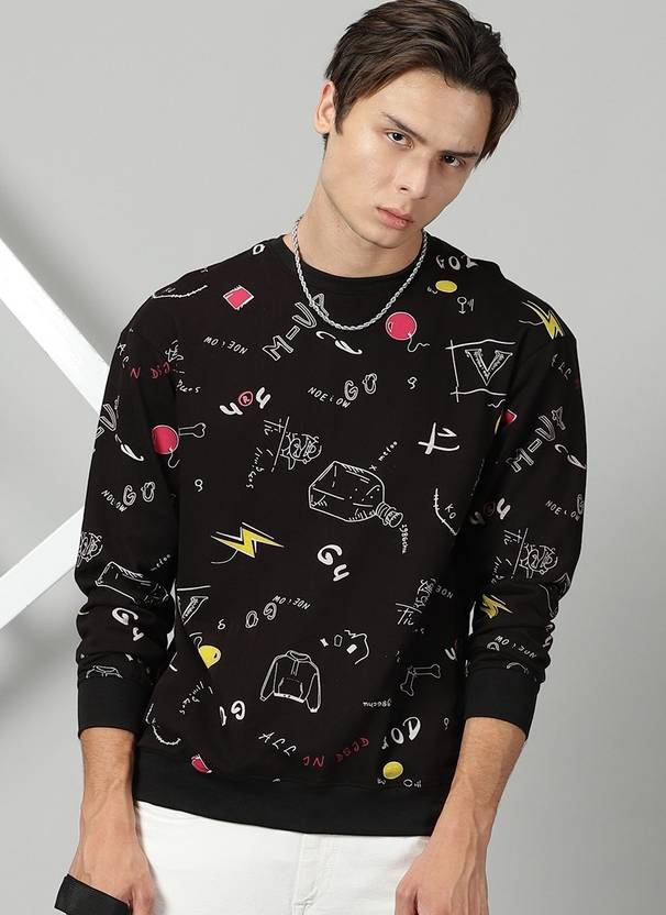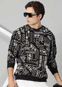 Men Printed Round Neck Pure Cotton Black T-Shirt