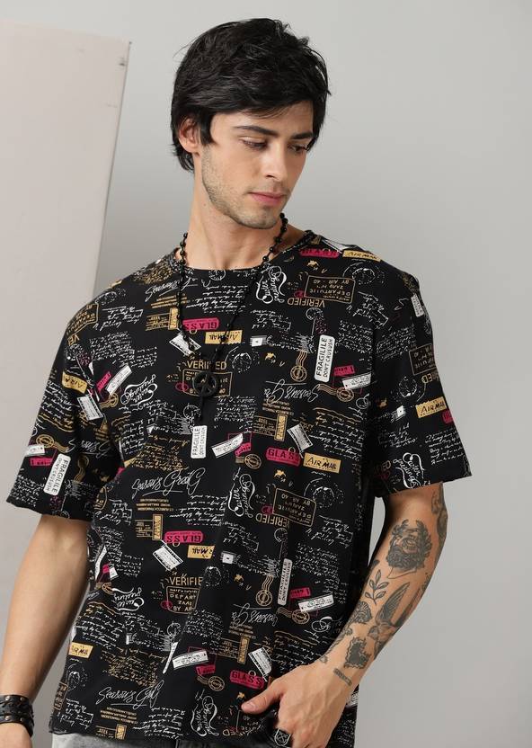 Introducing the RodZen men's printed T-Shirt, a bold and funky addition to your everyday street wear. Crafted from pure cotton, this oversized t-shirt is designed to make a statement. Featuring a striking tie-dye and all over print , it exudes an edgy vibe. With half sleeves and a comfortable crew neck, it offers a relaxed fit. Express your unique style with this eye-catching tee that effortlessly combines comfort and fashion.Oversized Tshirt for men which are in trend.