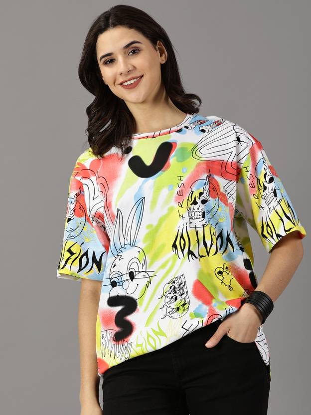 RodZen Oversized T-shirt is to make you style in the minds of people. RodZen Oversized t-shirt meticulously crafted with Cotton fabric, bio washed for extra softness. The cozy style will be perfect addition to your fashion apparel. Pair it with tracks, Chinos or Jeans for an urban looks, Grab the RodZen Oversized T shirts now with our pocket friendly prices. Available in different patterns, colors and sizes.Oversized tshirt for womens
