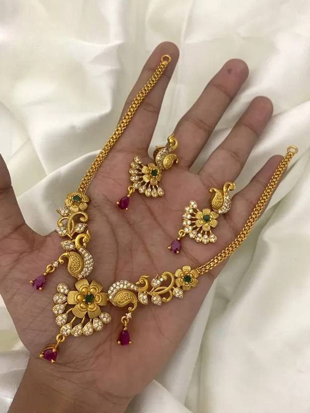 Rangrozo Jewellery Brass, Alloy Gold-plated Gold Jewel Set (Pack of 1)