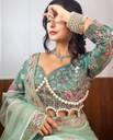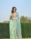 Embroidered, Woven, Solid/Plain, Embellished Bollywood Net Saree (Green)
